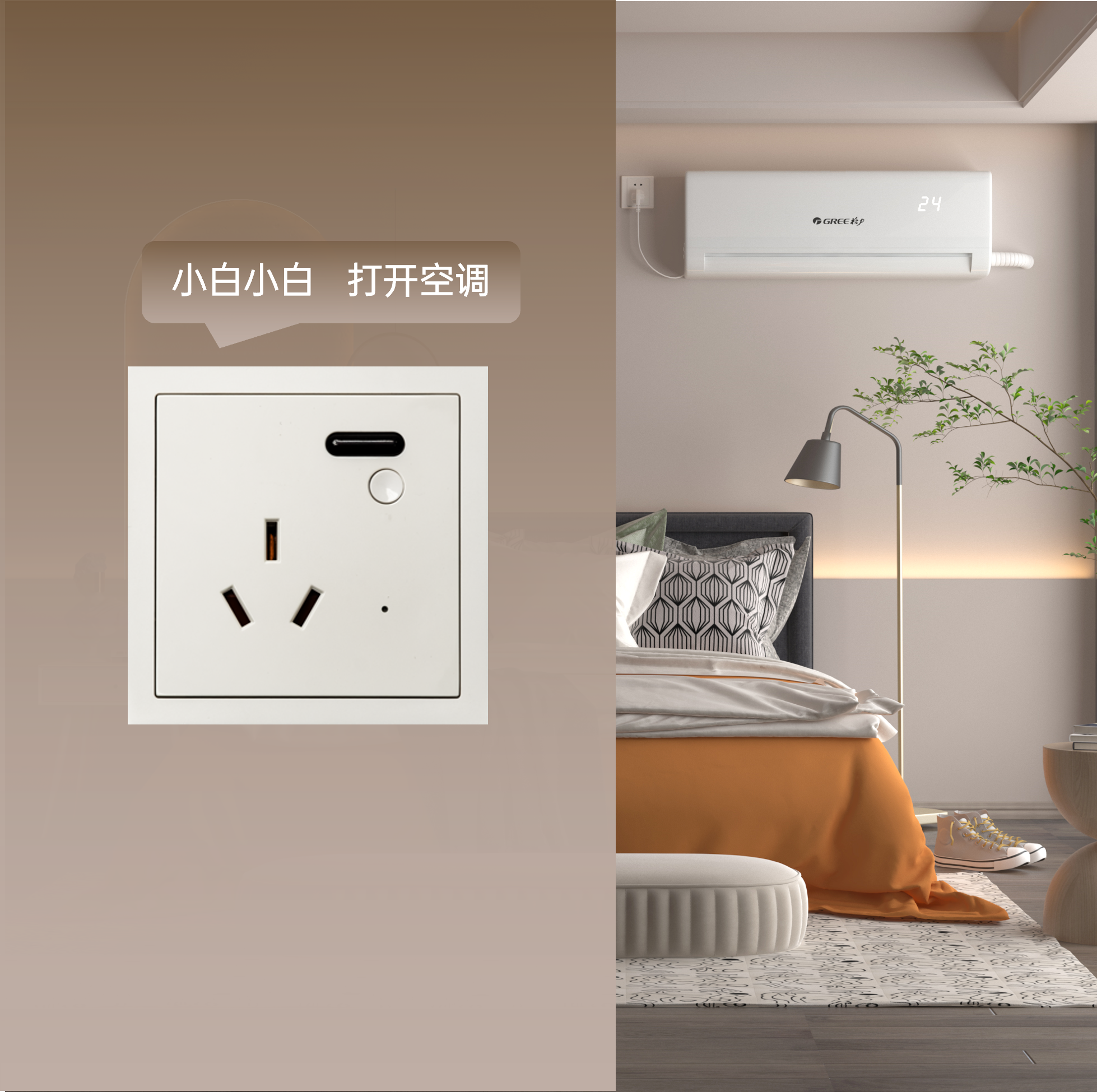 直接替換傳統插座,讓您的生活更智能! 可控制壁掛式空調,實現溫度、模式、風速的控制。
